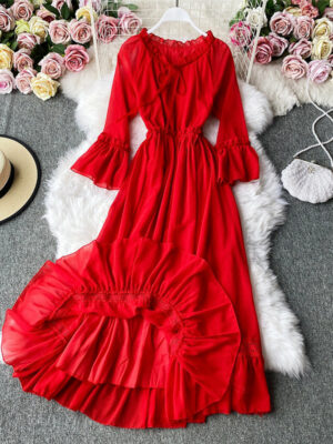 Red A Line Chiffon Dress Fashion Girl Dress P303