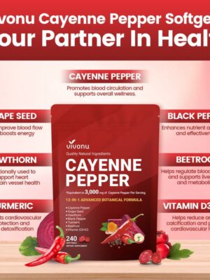 Cayenne Pepper Softgels Supplement, Supports Leg Vein, Heart and Blood Vessel Health, with Vitamin E D3+K2 and Extracts of Grape Seed, Hawthorn, Beetroot and Others (240 Softge /1 Bag)