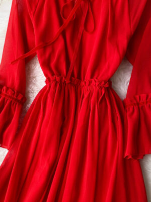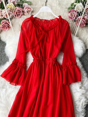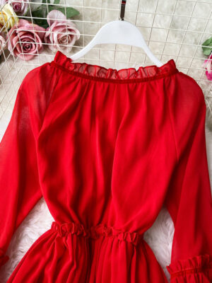 Red A Line Chiffon Dress Fashion Girl Dress P303